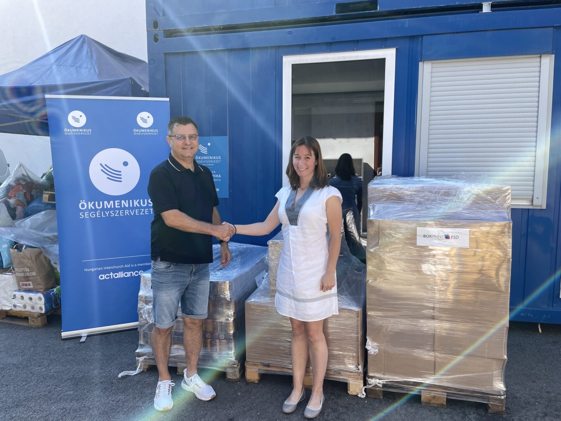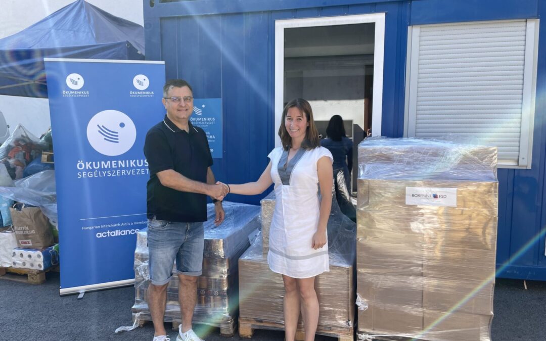 Az orosz-ukrán háborúból menekülők segítésére a Boxprint Kft. összeállított egy olyan tartós élelmiszerekből, vitamindús italokból és kézfertőtlenítőből álló csomagot, ami hasznára lehet gyermekeknek és felnőtteknek egyaránt. Az akcióba bevontuk megrendelőinket is, akiktől önköltségi áron vagy az alatt juthattunk a termékekhez: Jona Drink almaléhez, Caola kézfertőtlenítőhöz és Lissé nápolyikhoz. Ezekhez a termékekhez vállalatunk gyártja a csomagolást, így közel állnak hozzánk a mindennapokban is, jól ismerjük őket, megbízunk bennük. Az Ökumenikus segélyszervezetnek átadott áru értéke meghaladta az 1 millió forintot.